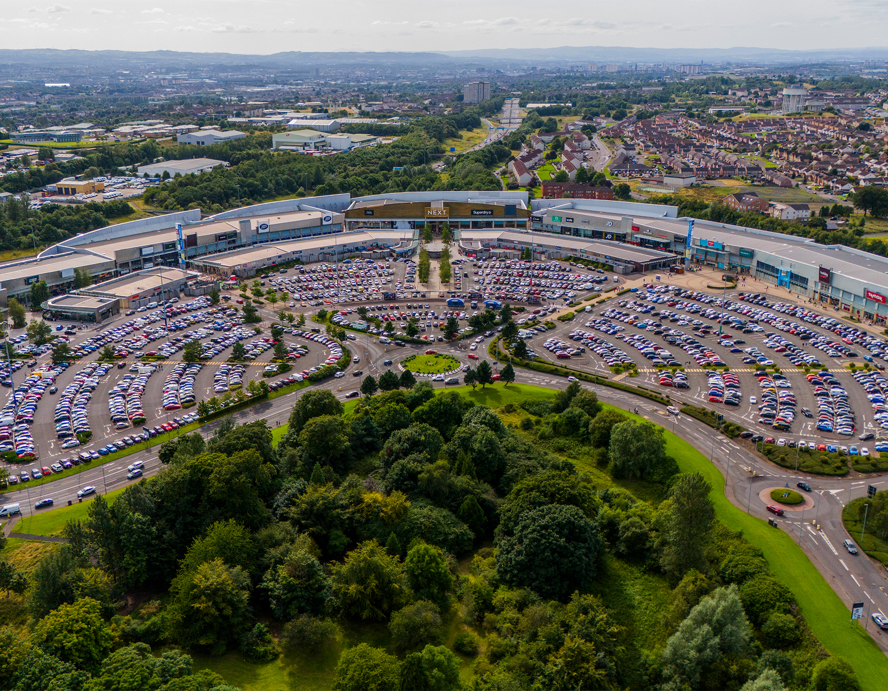 Glasgow’s most successful and highest-performing retail, leisure and entertainment destination, home to numerous ‘top 10’ flagship and concept stores. Well-connected and conveniently located. Next to junction 10 of M8 motorway, with over 2,500 free parking spaces (including disabled and family) and more than 100 bus routes arriving and departing per hour for/from across Scotland. Uniquely placed, surrounded by 20 acres of lush green parkland, neighbouring a stately home and loch with an entrance to the nationally significant Seven Lochs Wetlands Park nature reserve. Brand new guest facilities include a visitor centre with new toilets, a changing places facility, parenting rooms and a ground-breaking employment, training and development service.